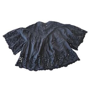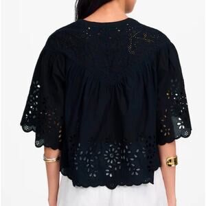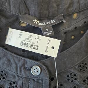 Madewell Embroidered Shirred Henley Top Size S NWT