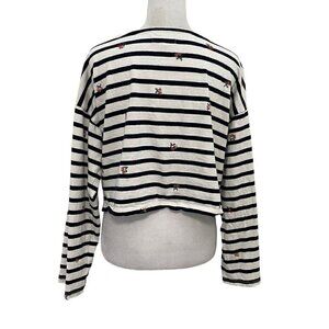 Madewell Embroidered Stripe Cropped Long Sleeve Tee T-Shirt size Small