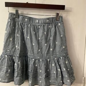 Madewell Embroidered Tiered Pull on Mini Skirt in Gingham Check Cottagecore NEW