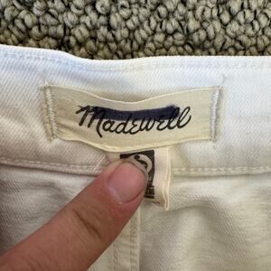 Embrace modern sophistication with the Madewell Emmett Wide Leg Cropped Jeans, featuring a chic white hue and contemporary wide-leg silhouette. These jeans are crafted with precision tailoring, offering a high-rise waist that elongates the figure and welt pockets that add refined detailing. The cropped length creates a flattering proportion perfect for petite frames, while the wide-leg design delivers a fashion-forward statement that balances elegance and ease. Made with stretch denim for comfort without compromise, these jeans move seamlessly from casual daytime wear to polished evening ensembles. Though gently worn, they maintain their structured shape and premium quality, showcasing Madewell's commitment.