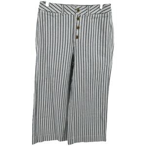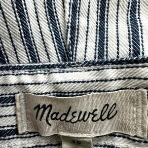 Madewell Emmett Wide-Leg Crop Pants Button Front High Moe Stripe Blue White 30