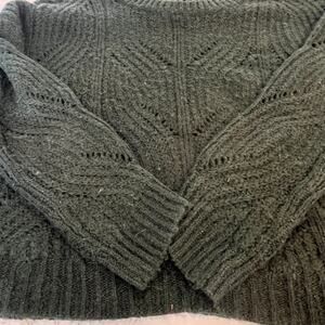 This sweater has a very fuzzy appearance and the natural fibers can look like pet hair. These are part of the knit. The design of the knit has some looser weave throughout the design where skin can sometimes be seen through the knit as pictured.