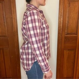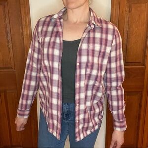 This relaxed button down shirt from Madewell features a notched collar and long cuffed sleeves, perfect for casual occasions. The white and red color combination offers a timeless appeal, while the comfortable fit ensures ease of wear throughout the day.