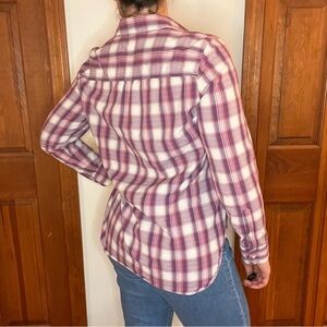 This relaxed button down shirt from Madewell features a notched collar and long cuffed sleeves, perfect for casual occasions. The white and red color combination offers a timeless appeal, while the comfortable fit ensures ease of wear throughout the day.