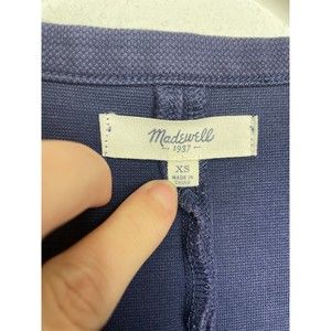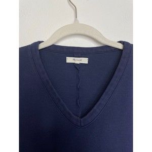 Madewell Extra Small Side Zip Piqué Sweatshirt Top Purple Blue 3/4 Sleeve V-Neck
