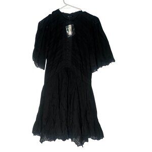 Madewell Eyelet Flutter Sleeve Mini Dress in Cotton Women's Size 2 in Black NWT!