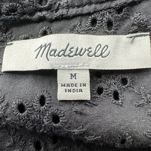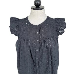 Madewell Eyelet Ruffle Sleeve Bib Top Black Button Down Size Medium
