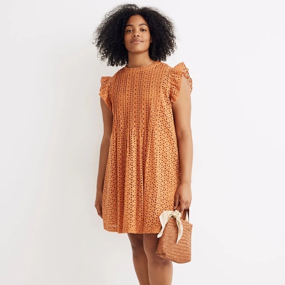 Madewell Eyelet Ruffle-Sleeve Pintuck Mini Dress Size Small