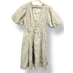Madewell Eyelet Sophia Mini Dress in Stripe Sunfade Indigo Size Small Balloon