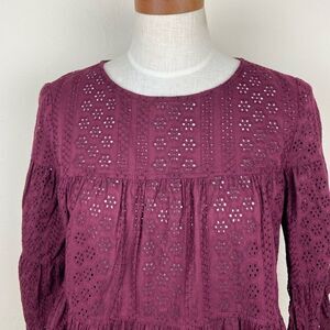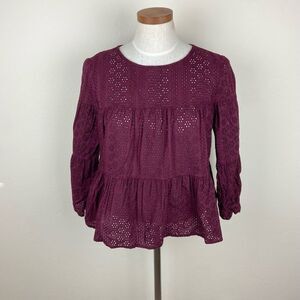 Madewell Eyelet Tiered Button-Back Top - Burgundy