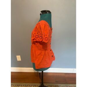 Madewell Eyelet-Sleeve Lucie Smocked Peplum Orange Top, size M