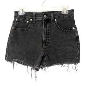 Madewell Faded Black The Perfect Jean Shorts High Waist Distressed Raw Hem 27