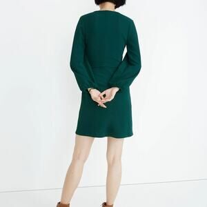 Madewell Faux Wrap Long-Sleeve Side-Tie Mini Stretch Dress Green Size XL