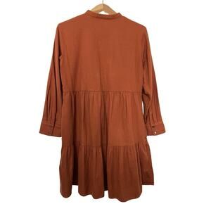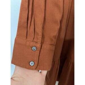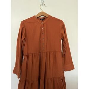 Madewell Flannel Button Placket Tiered Mini Dress Size S Warm Nutmeg Boho