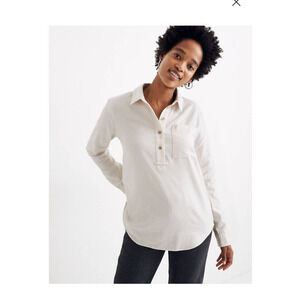Madewell Flannel Classic EX-Boyfriend Popover Shirt / Size- Medium / Color- Oatmeal / New With Tags / 100% Cotton / Lightweight /