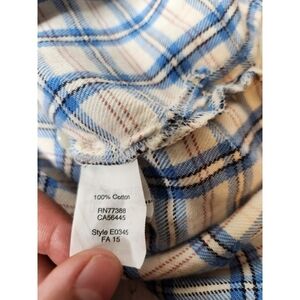 Excellent condition. An oversized version of our favorite tomboy button-down with a cool slit shirttail hem. An easy shape in a timeless plaid flannel. Oversized fit. Cotton. Please see photos for measurements. Box G