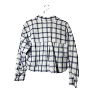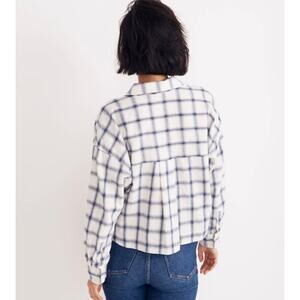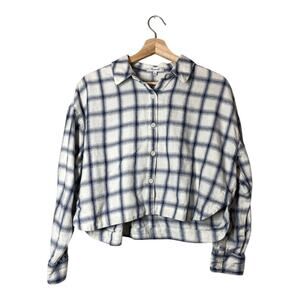 Madewell Flannel Shirt Hartfield Windowpane Cropped Blue Sz Medium NG885