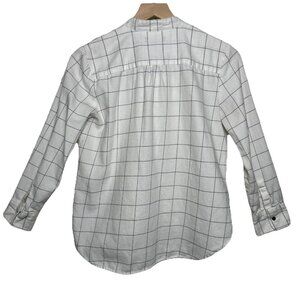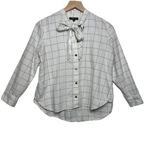 Madewell Flannel Tie Neck Shirt Windowpane XXS Relaxed Fit White Black Button Up