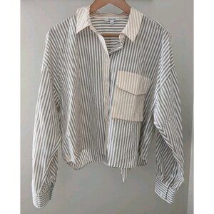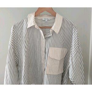 Madewell Flap-Pocket Crop Button-Up Shirt Poplin Size Large Gray Stripe Cotton