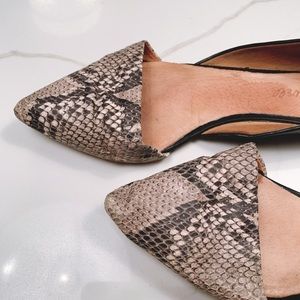 Madewell flats. Size 8. Color black with snake print toe. Condition fair. Material leather.