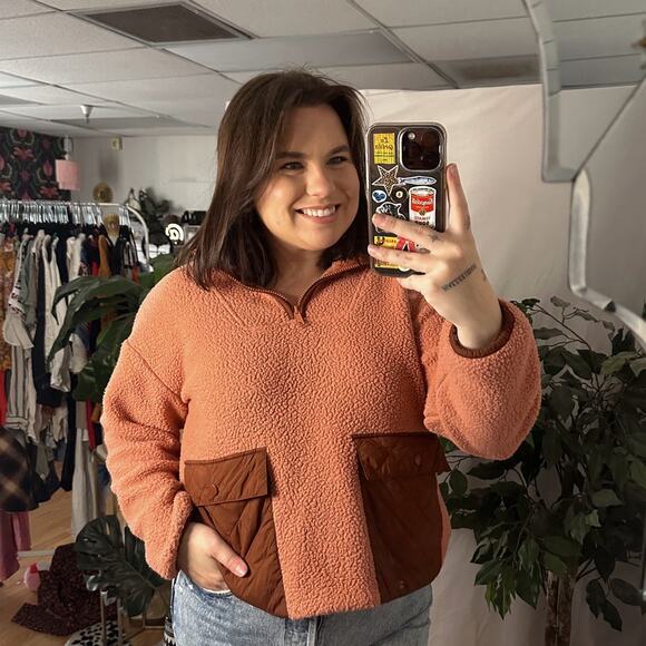 Madewell Fleece Quilted-Pocket Popover Jacket in Rose Dust Size XS