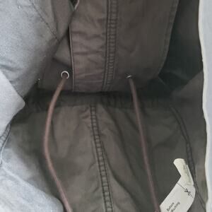 Good, pre- owned condition with normal signs of wear and mild fading. Factory distressed to look worn. Streamlined military-inspired style with clean lines, a stand-up collar, zip pockets and a waist-defining drawstring. Distressed gray (color is accurate in the photos). Please see all pictures for details and complete condition. description.