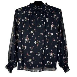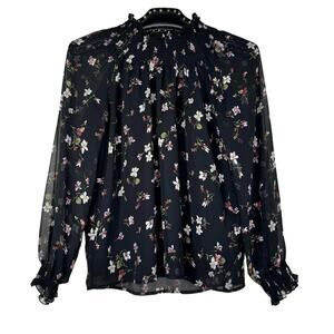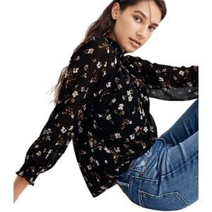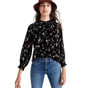 Madewell Floral Backyard Blooms Smocked Mockneck Sheer Top XS