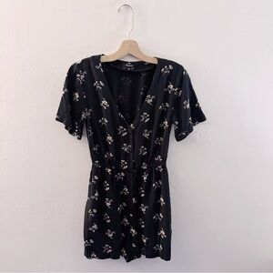 Madewell Floral Black Romper Short Sleeve Shorts Summer