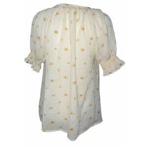 button closure. The lightweight blouse is made from 100% cotton and is machine