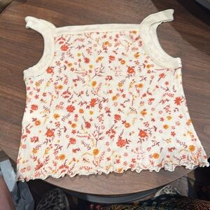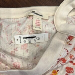 Charming floral crop top by Madewell. Features a cream base with red and orange floral patterns. Perfect for casual outings.