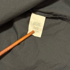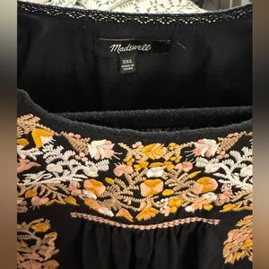 Excellent condition, only worn a couple of times, no signs of wear. Beautiful embroidery in pink, mustard, tan and white on black poplin fabric.