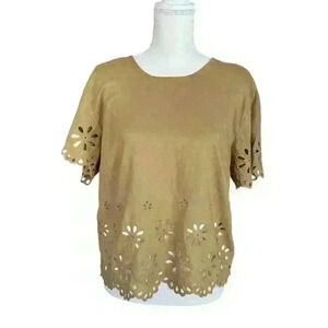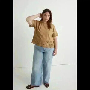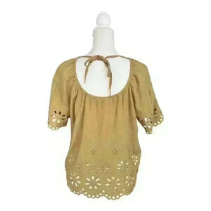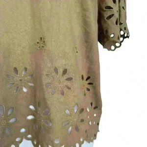 Madewell Floral Eyelet Crop Top in Olive Surplus - Size Medium
