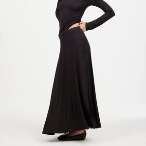Madewell Flowy Jersey Asymmetric-Seam Midi Skirt Black Size XL NWT