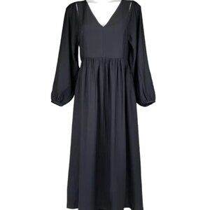 Madewell Flowy V-Neck Empire Waist Midi Dress in Black