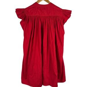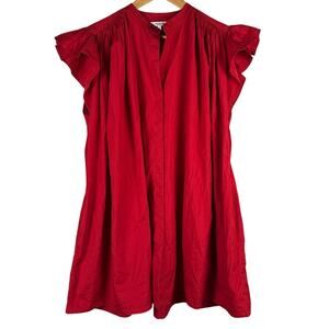 Madewell Flutter Sleeve Button-Front Poplin Mini Dress Red Pcockets Size Large