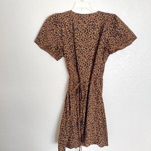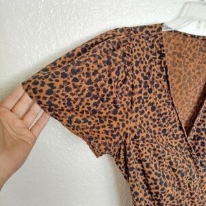 Madewell Flutter-Sleeve Wrap Mini Dress in Painted Leopard sz M
