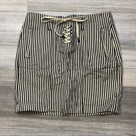 New women’s casual mini pencil skirt from Madewell! Lightweight material great for any outfit or occasion. Mini length, front lace up, striped pattern, fitted, new with tags still attached, perfect condition!