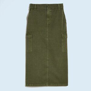 Madewell Garment Dyed Cargo Denim Midi Skirt Khaki Green Size 27 NWT