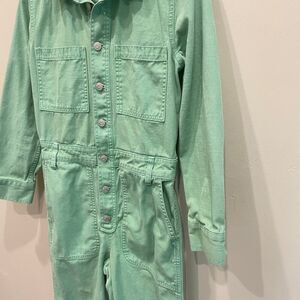 Madewell Garment-Dyed Relaxed Coverall Denim Jean Jumpsuit in Pale Evergreen