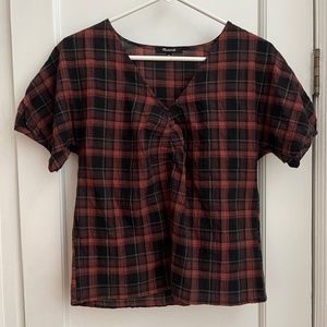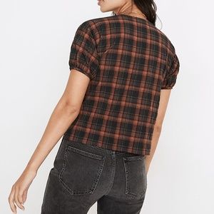Dressed up or down, this plaid top with a gathered V-neck and puff sleeves looks too cute tucked into high-rise jeans.