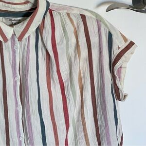 Madewell Gauze Central Button Down Tunic Shirt in Rainbow Stripe Size XS