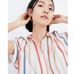 Madewell Gauze Central Button Down Tunic Shirt in Rainbow Stripe 35927