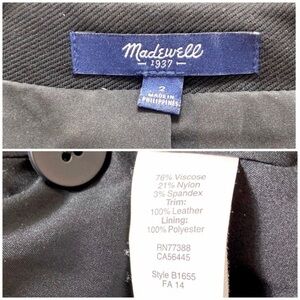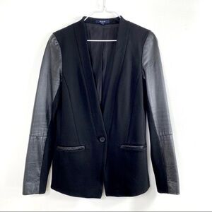 Madewell Genuine Leather-Sleeves Blazers Jacket in Black