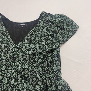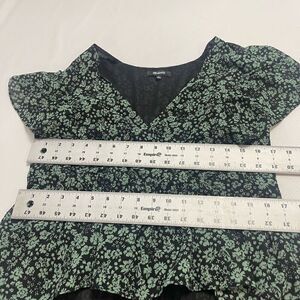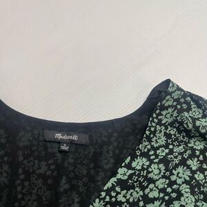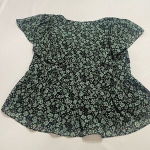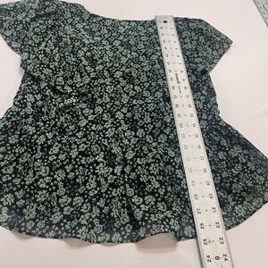 Madewell Georgette Green Floral Faux Wrap Short Sleeve Peplum Top Small Womens