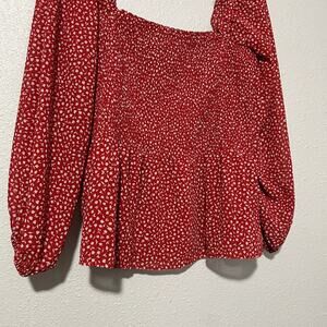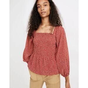 Madewell Georgette Lucie Floral Smocked Peplum Top Red 6 Square Neck