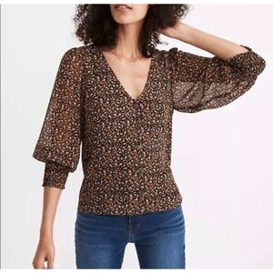 Madewell Georgette Smocked Cuff Button Up Blouse in Peasany Paisley, size 4