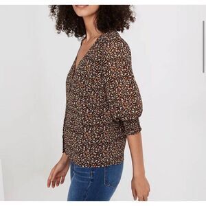 This top was so popular it sold out. Made of airy and earth-friendly recycled georgette, this blouse has lots of fun details like its smocked cuff sleeves, buttons, and floral pattern. It's in great pre-loved condition.