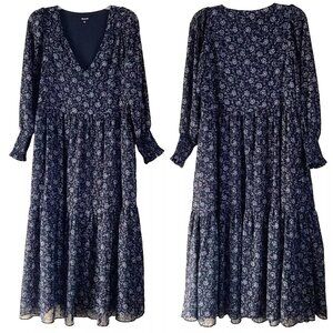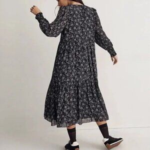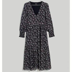 Madewell Georgette V-Neck Tiered Midi Dress Enchanted Dark Moody Floral Small