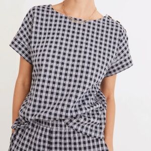 Madewell Gingham Knit Seersucker Button-Shoulder Top, size small. Excellent condition. Color Faded Lavender.