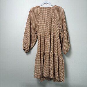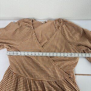 Madewell Gingham Puff Sleeve Wrap Dress Size XXL 2XL Golden Pecan Pockets NE793